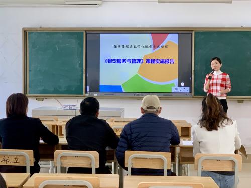 第二环节中,参赛教师围绕抽选教案内容,通过10分钟的无学生教学展示,生动演绎课堂互动、知识讲解与技能示范。其中,第二组《餐饮服务与管理》结合虚拟酒店服务场景,获得评委高度评价。
